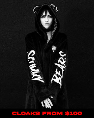 Scummy Bears creates alternative fashion for men, women, and everyone in between, blending rave fashion, festival apparel, goth aesthetics, and dark streetwear into designs that that are impossible to put into a single category.